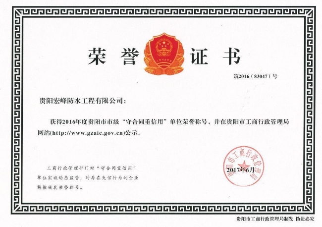 宏峰公司属国家防水防腐保温工程专业承包贰级资质企业,经贵州省住房和城乡建设厅考核合格